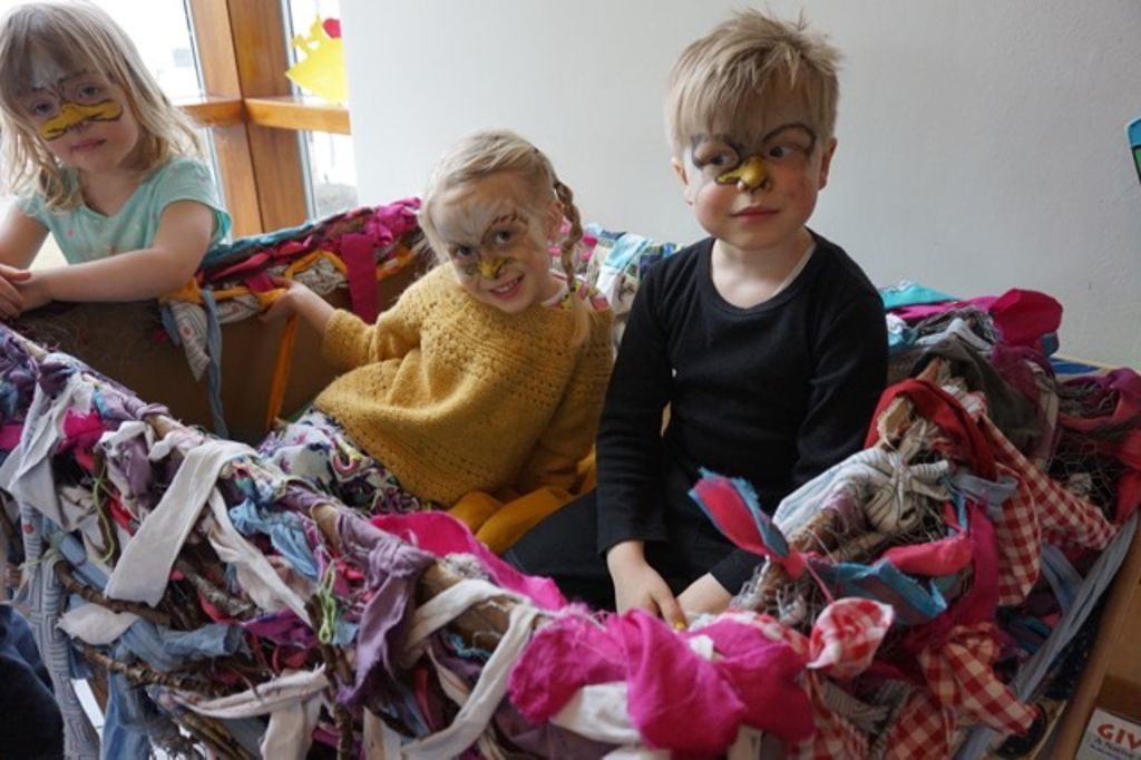Börnin höfðu mikinn áhuga á eggjum og hreiðri arnanna, og inni á deild gerðu þau æðislega fínt hreiður úr pappakassa, hænsnaneti, taureimum og smágreinum ásamt tveimur eggjum úr blöðum og gipsi. Þetta hefur skapað frábæran ramma um hlutverkaleik síðustu vikurnar.