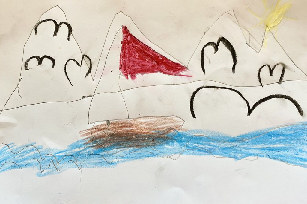 Börnin búa til bát þar sem 2 nemendur eru báturinn og 1 er inn í bátnum og síðan róa þau eða nota segl sem hægt er að búa til og fara að leita af sjónarrönd.