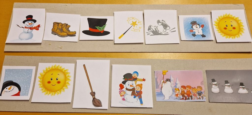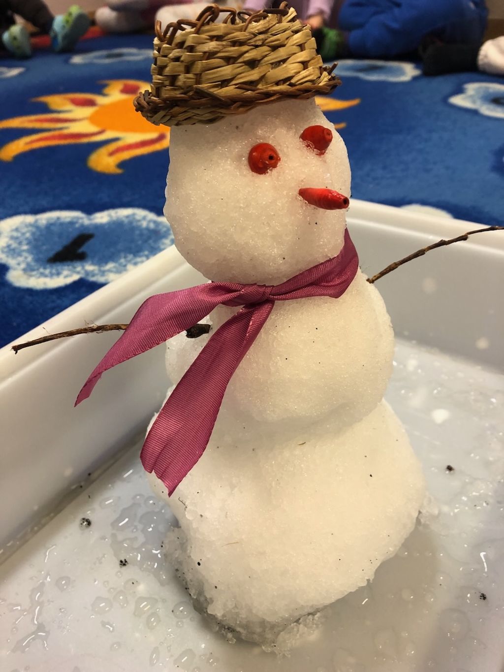 Við bjuggum til lítinn snjókarl sem við létum bráðna inni. Börnin fylgdust við ferlinu og við tókum myndir af bráðnuninni.