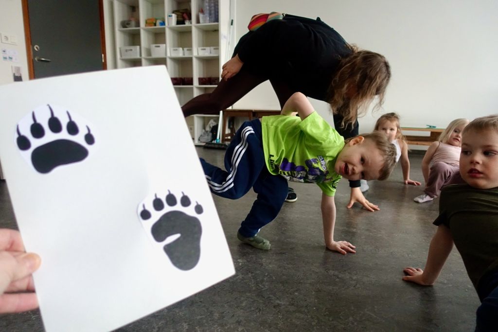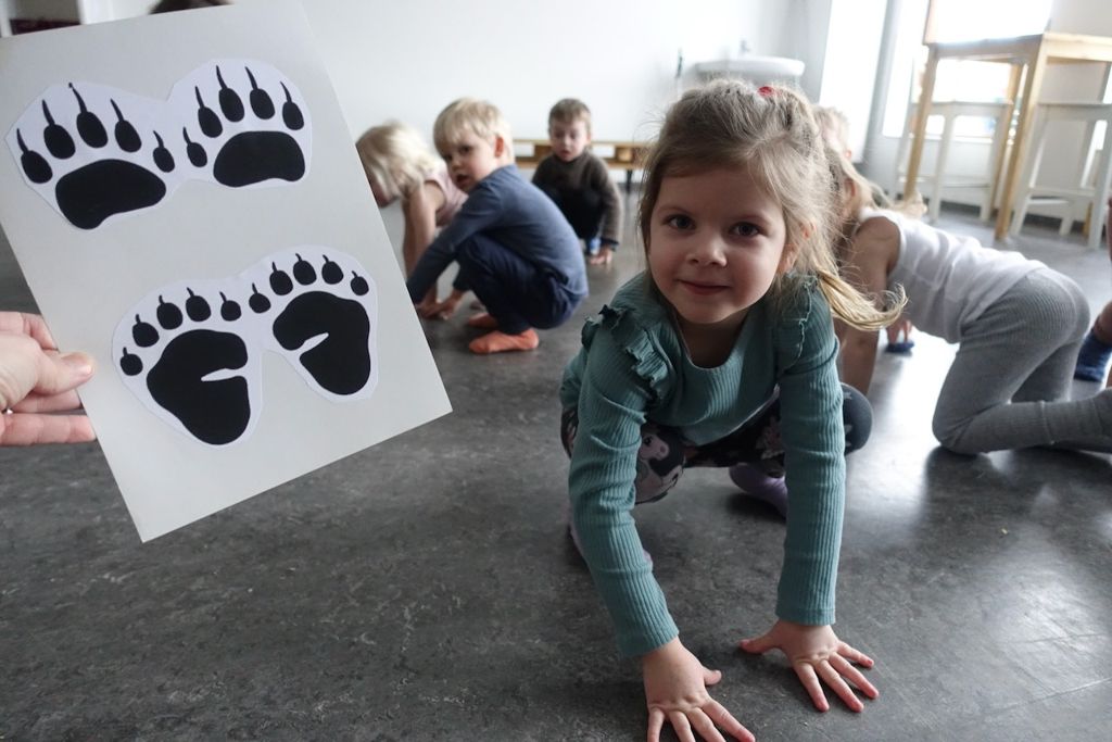 Þetta er einfaldur og skemmtilegur stoppdans. Börnin dansa frjálst við tónlist (t.d. I'm your gummy bear. Þegar tónlistin stoppar heldur kennarinn upp spjaldi sem sýnir hvernig loppurnar á birninum eiga að hvíla á gólfinu og börnin reyna að líkja eftir því. Sérstaklega skemmtilegt er að fylgjast með lausnum þeirra á því að vera bara með framfætur á gólfinu :).