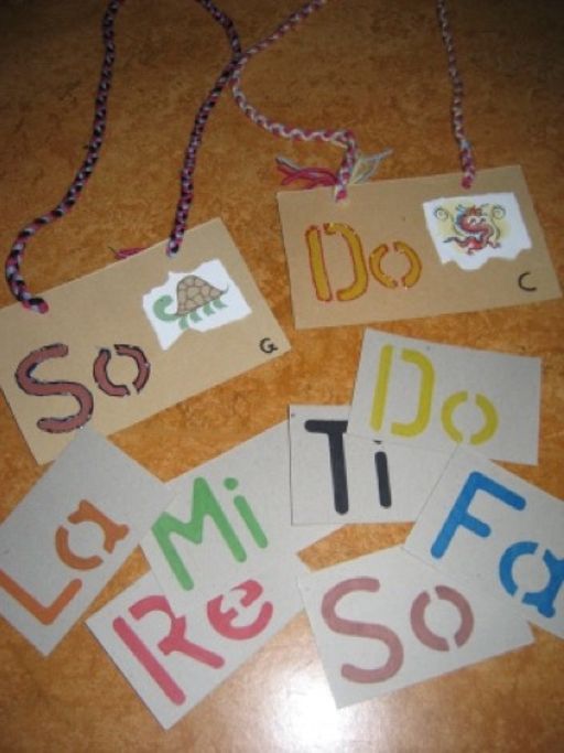 Til þess að auðvelda börnunum að muna hvaða tónn þau eru er á spjaldinu dýr sem auðveldar þeim að muna. Skjaldbakan So, Drekinn Do o.sfv.