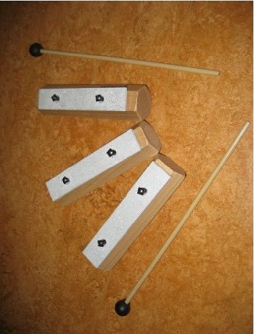 Spilið er gert úr endur unnu efni. Það er einfalt og börnunum finnst gaman að búa til tónverk.