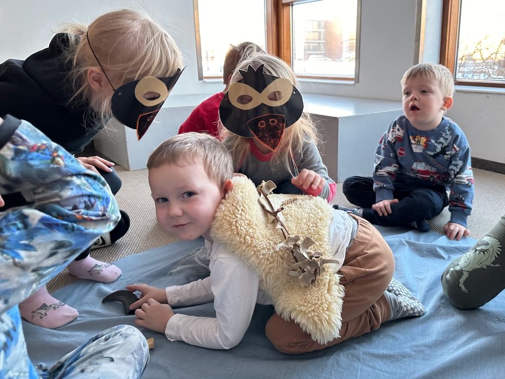 Það er alltaf dásamlegt að sjá börnin fara í hlutverkin í laginu, kannski sérstaklega hlutverk hrútsins sem er étinn, enda krefst það ákveðins hugrekkis. Hrúturinn er með gæruskinn á bakinu, hryggbein á bandi og tvö horn á meðan börn með krummagrímur fljúga í kring og setjast svo niður og kroppa í hann af mikilli lyst og innlifun. Þegar ég gerði þetta svona í fyrsti skipti áttaði ég mig á því að flest börn höfðu aldrei hugsað út í hvað í raun var að gerast í laginu - fyrir utan krunkið, auðvitað :)