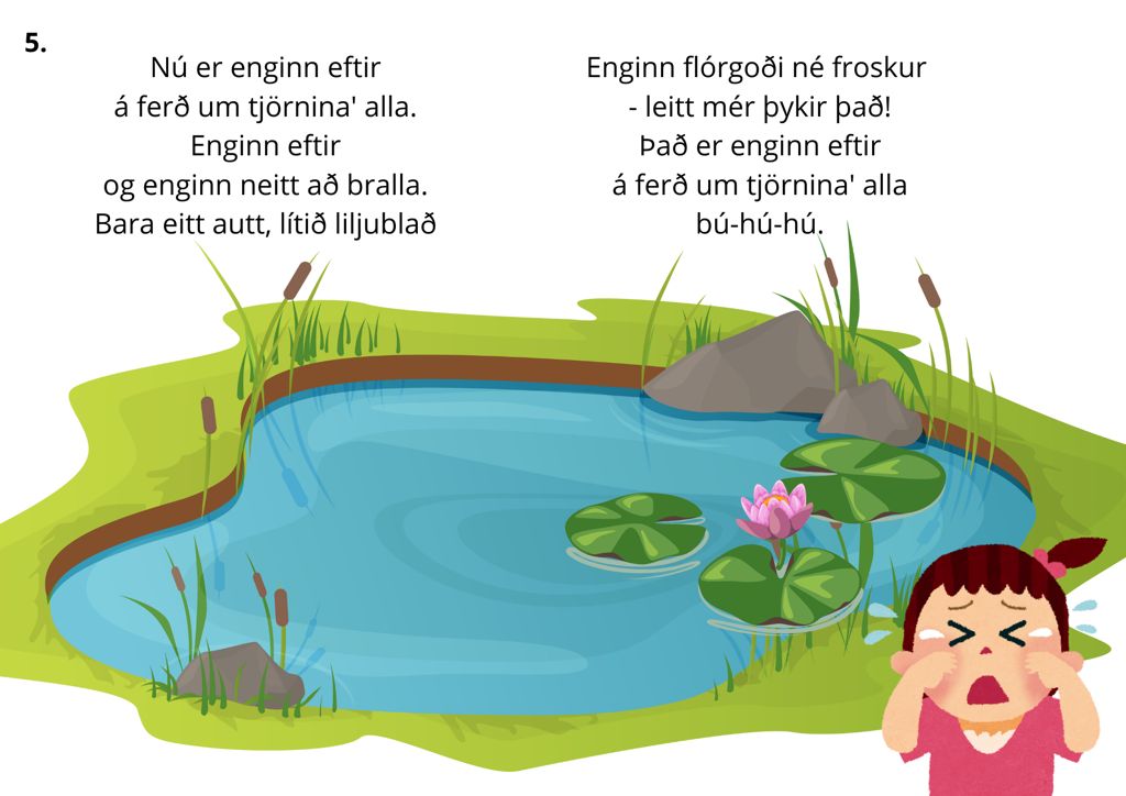 að hoppa' um tjörnina' alla.