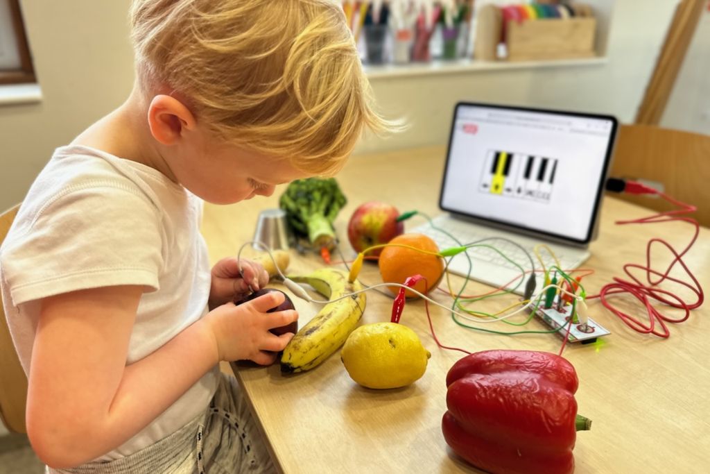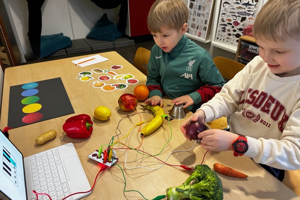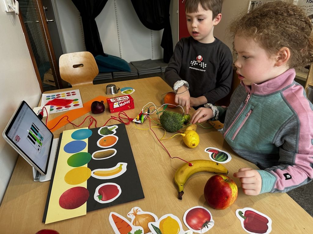 Að breyta grænmeti og ávöxtum í píanó er eiginlega alveg jafn skemmtilegt og það hljómar. Mig hefur alltaf langað að prófa að nota Makey Makey í leikskólanum og varð glöð þegar ég komst að því að samstarfsmaður minn Hafþór H. Einarsson ætti sett og væri tilbúinn til að leyfa mér og börnunum að prófa okkur áfram með það.