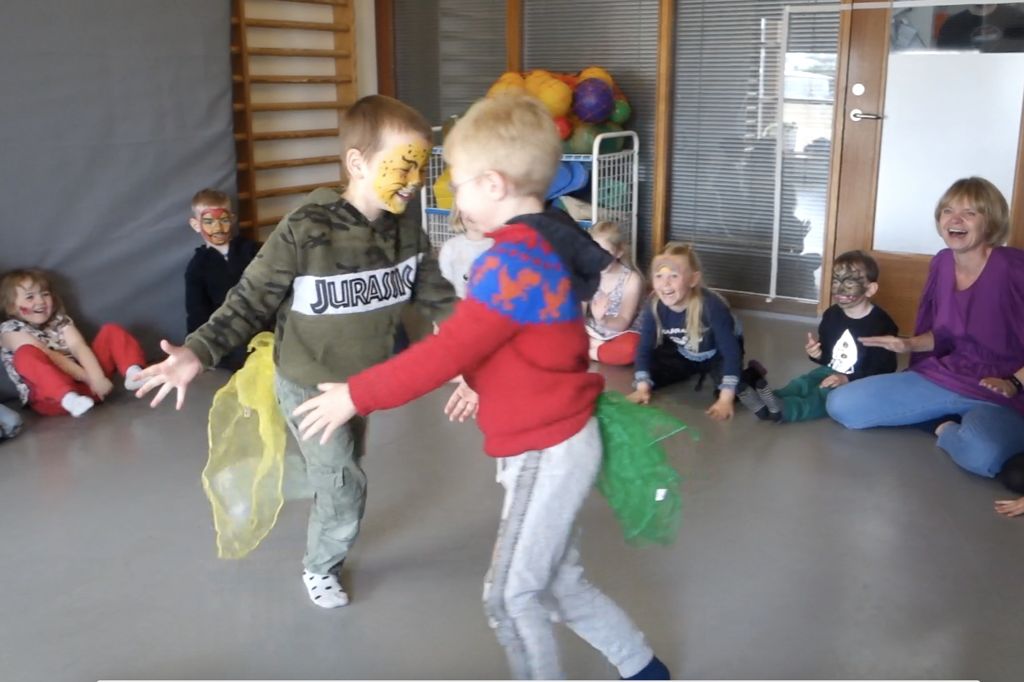 Þetta er eitt það langskemmtilegasta sem ég hef gert á þessu skólaári og börnin hafa líka greinilega gaman af. Leikurinn er hressandi og lagið slær strax í gegn svo að þátttakan verður mikil. Að veiða hala eða skott er gamall hreyfileikur sem hér er settur inn í tónlistaramma. Ég varð svo hrifin þegar ég sá þetta á danskri vefsíðu að ég ákvað strax að snara leiknum yfir á íslensku.