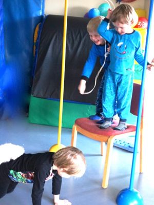Við Imma (Ingibjörg Ásdís Sveinsdóttir) vinnum saman að verkefninu Leikur að bókum. Þar höfum við fyrir venju að skipta börnunum á deildinni upp í þrjá hópa og leika söguna/bókina með hverjum hópi, en þau leika oft söguna aftur og aftur og skipta um hlutverk.