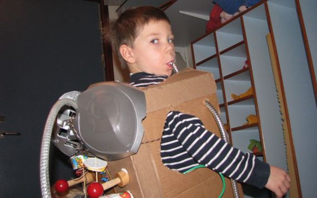 Ekki má gleyma að nefna kafarabúninginn, sem börnin gerðu úr pappakassa. Hann sést á myndinni hér að neðan.