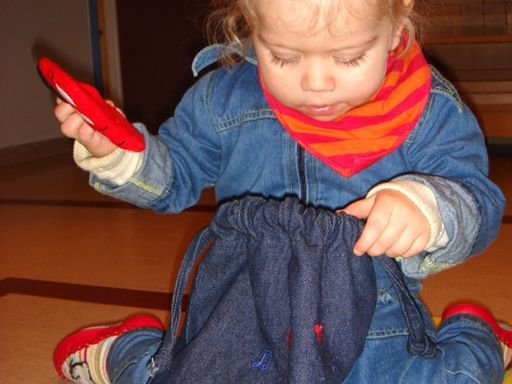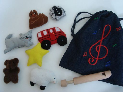 Setjum hluti í poka. Hver hlutur stendur fyrir lag (eitt eða fleiri). Börnin skiptast á að taka upp úr pokanum, og við syngjum saman lögin sem tengjast hlutunum.
