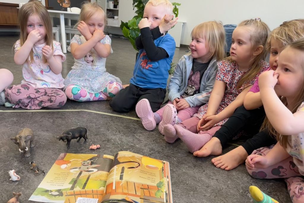 Tælensk móðir er nýbúin að svæfa barnið sitt þegar hún heyrir í mýflugu. "Suss! Sérðu ekki barnið mitt sefur?!" segir hún við mýfluguna, en þá byrjar hins vegar alltaf eitthvert annað dýr að hafa hátt: fyrst eðla, svo köttur, mús, froskur, svín o.s.frv. Alltaf syngur mamman litlu vögguvísuna sína, en gerir sér ekki grein fyrir að barnið er glaðvakandi og farið á stjá í húsinu...