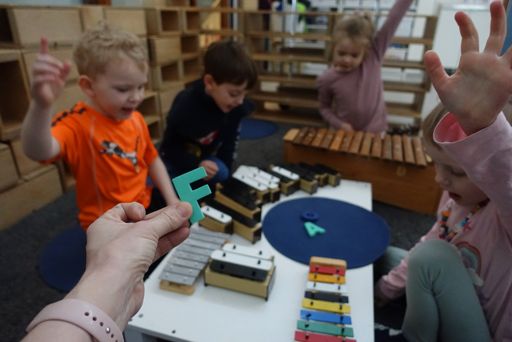 Á myndskeiðinu sést að öll börnin spila samtímis og skipta um hljóðfæri til að fá að prófa þau öll. Annars mæli ég með því að vera bara með einn sílófón og leyfa 1-2 börnum að spila á hann í einu. Það skapar tækifæri fyrir hin að hlusta með meiri athygli.
