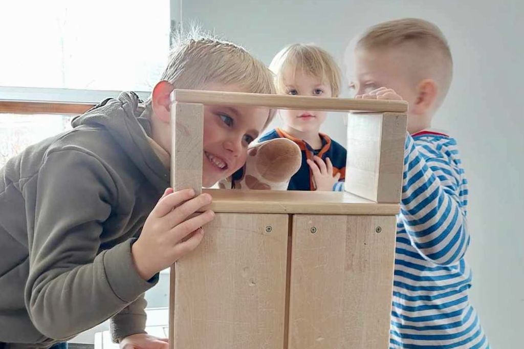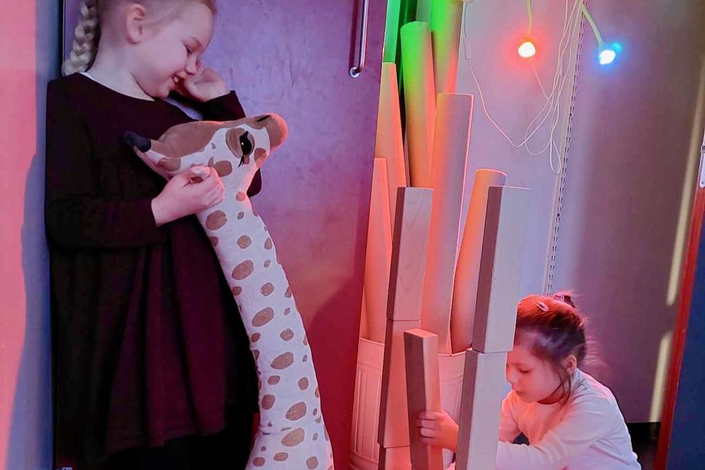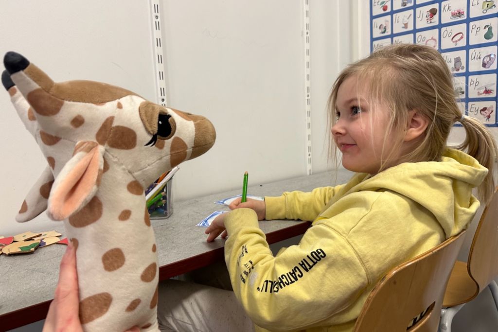 Gíraffinn okkar er úr Góða Hirðinum og börnunum þykir mjög vænt um hann og finnst gaman að hafa hann með í leik.